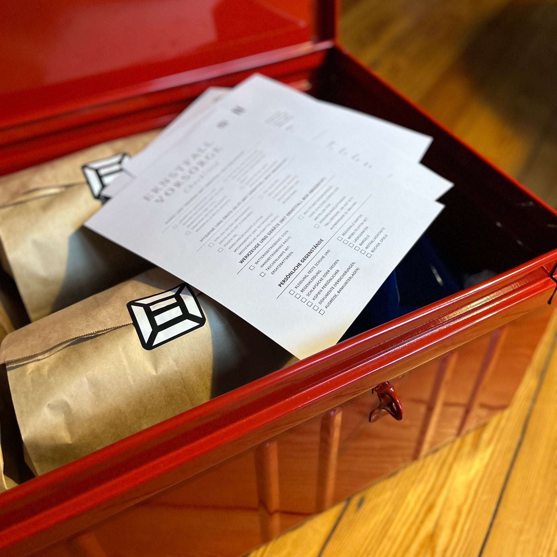 Der genaue Inhalt der Ernstfall-Box kann aufgrund von Verfügbarkeiten geringfügig abweichen. Die Lieferung erfolgt ab Juni 2025.